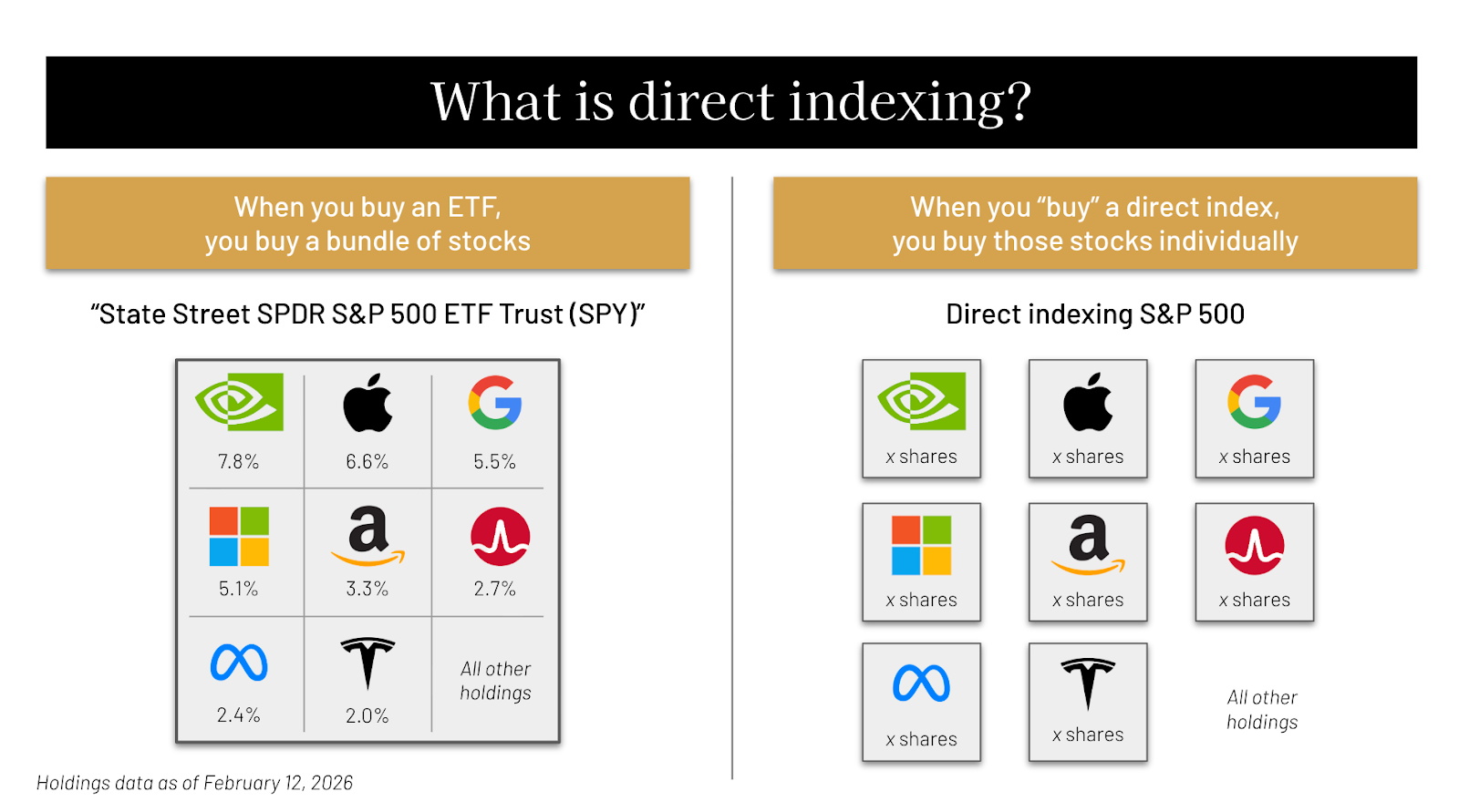 And where that DCA is a priority, and we want to maximize TLH – that brings us to our second strategy for maximizing tax loss harvesting opportunities: direct indexing.