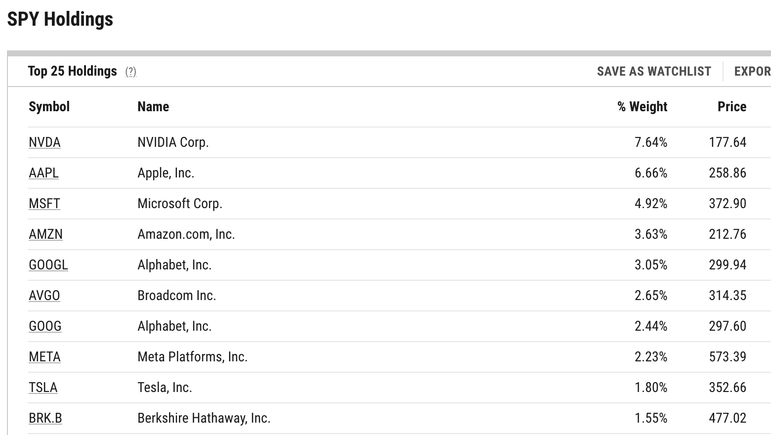 I love talking to clients about what they hold in their portfolios; one “magic trick” is pulling up an ETF to show them the underlying holdings. For example, here’s the holdings for SPY, the famous S&P 500 ETF, as of April 6, 2026: